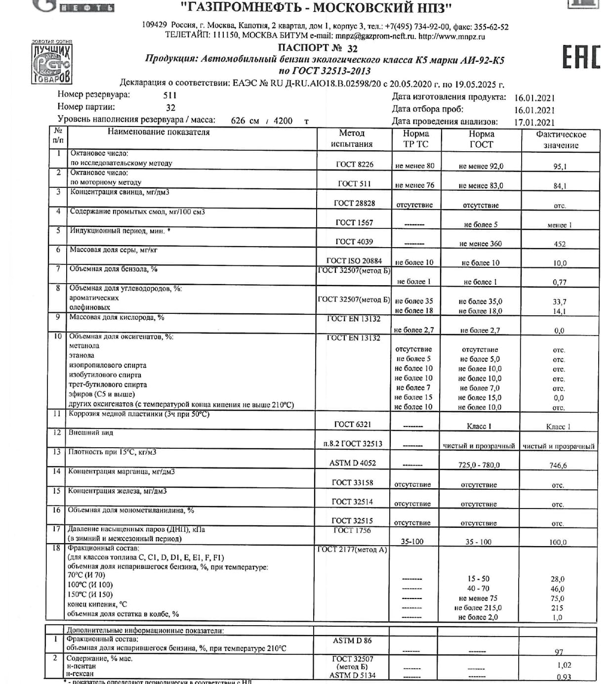 Поставки Бензина АИ-92 ЕВРО 5 с МНПЗ